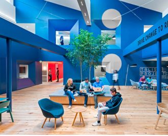 Modern ofis atmosferinde, klasik kampüs modelinin ötesinde gerçek dünya entegrasyonu sağlanır.